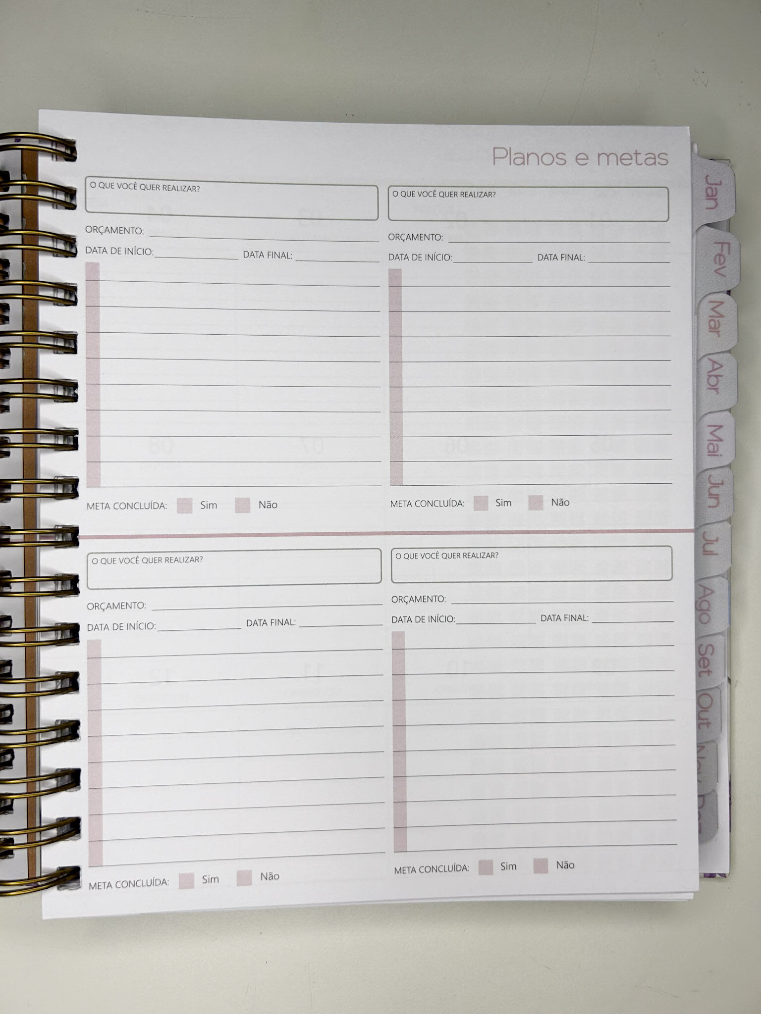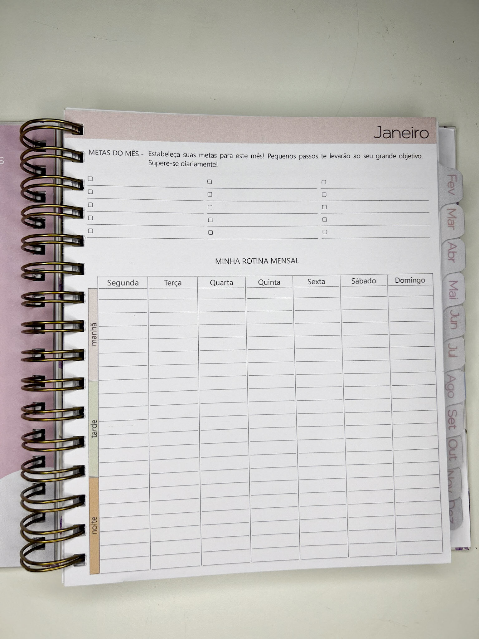 - Planejamento mensal em 2 páginas;